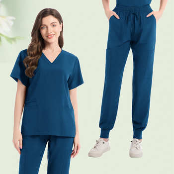 พยาบาลผู้หญิงลําลองแขนสั้นเครื่องแต่งกาย Top Pharmacy ทํางานโรงพยาบาลแพทย์แพทย์พยาบาลชุด V คอ Jogger